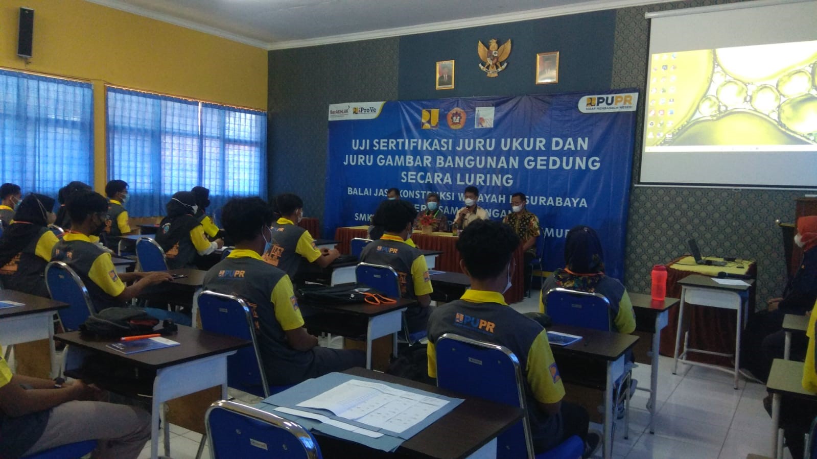 Sebagai tindak lanjut kegiatan Pembekalan Calon Peserta Uji Sertifikasi LSP-P3, Kementerian Pekerjaan Umum dan Perumaahan Rakyat (PUPR) Balai Jasa Konstruksi Wilayah 4 Surabaya untuk Juru Gambar Bangunan dan Juru Ukur tanggal 22 – 23 Pebruari 2022 bagi 103 siswa SMK Negeri 3 Jombang dari XII BKP1,2, DPIB 1,2 dan XII TGM, , maka dilaksanakan Uji Sertifikasi LSP-P3 oleh Tim LSP-P3 dan Tim Asesor selama satu hari penuh yaitu pada hari Sabtu, 27 Agustus 2022. Merupakan suatu kehormatan bagi SMK Negeri 3 Jombang, karena ditunjuk sebagai Tempat Uji Kompetensi (TUK).